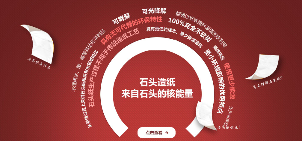 深圳市石能新型環保材料有限公司是國內唯一擁有完整的石頭紙造紙產業鏈的綜合運營商,具有技術服務和設備供應能力,同時擁有壓延法和吹膜法兩種石頭造紙成熟工藝方案;致力于推動石頭造紙技術和產業終端產品的普及應用,改變中國乃至全球的紙品產業的應用習慣,把人類環保事業推向新的高度。 公司專注于石頭紙技術改進,設備研發、投資咨詢、解決方案、原料母粒、中端材料、產品設計等,擁有完整的運作體系和豐富的市場推廣經驗。目前,我們還在環保皮革、瓦楞箱、環保塑料、農用透氣膜等方面擁有多項專利,逐步開發出相對應的產品以滿足市場需求。歡迎有志之士的加盟,在這個功在當下利在千秋的偉大事業中,共同創造并收獲永恒的人生價值!期待與您共同進入石頭造紙新時代,成就新事業! Join the new stone age with us!  Share the new prospect! 石頭紙生產廠家|環保防水石頭紙采購平臺|深圳石頭紙價格|深圳石頭紙制造廠家年產12萬噸